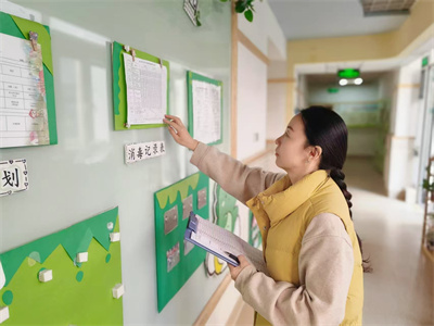 “预防为先、全程呵护”是娄老师始终坚守的工作理念。她紧盯季节变化与传染病防控重点,把健康知识转化为幼儿易懂的小儿歌、趣味卡通板报、创意绘画展,让孩子们在玩乐中轻松掌握洗手、防护的正确方法;同时定期更新园区宣传栏、推送线上健康小贴士,搭建起家园协同防控的坚实桥梁。每日她都会逐一督查班级、公共区域的卫生消毒情况,小到玩具的擦拭、餐具的消毒,大到活动室的通风、地面的清扫,都一一细致核查,用实际行动践行师德承诺。